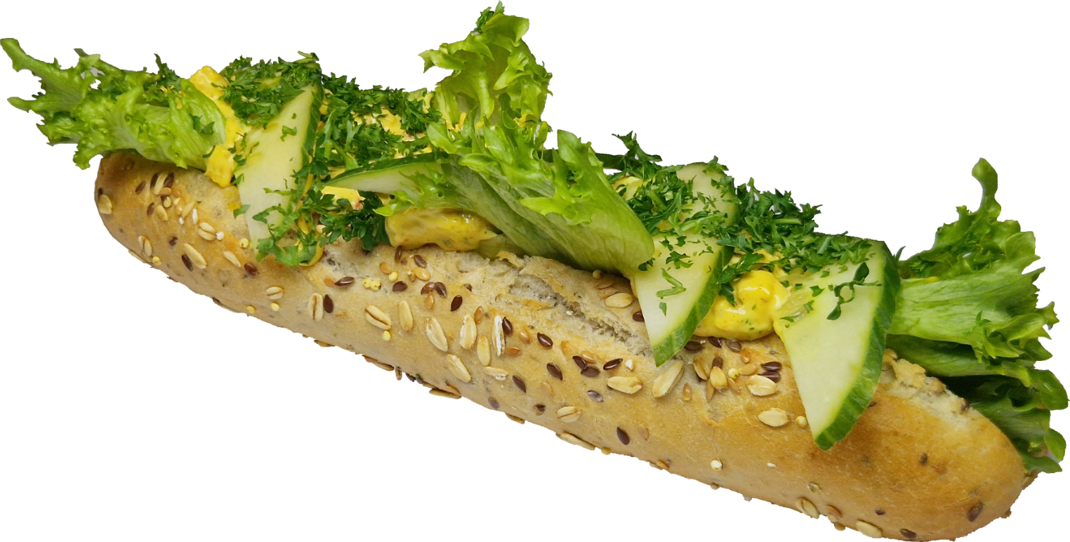 INNEHÅLL: Baguette (VETEMJÖL, RÅGMJÖL, HAVREFLINGOR) chiafrön, solroskärnor, linfrön, hirs. Fyllning: Grillad kyckling, majonnäs (ÄGG, SENAP), crèmefraiche (MJÖLK), curry, paprika, citron, äpple, mango, chili, vitlök, gräslök, persilja, salt. Topping: Sallad, gurka, persilja